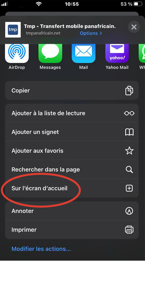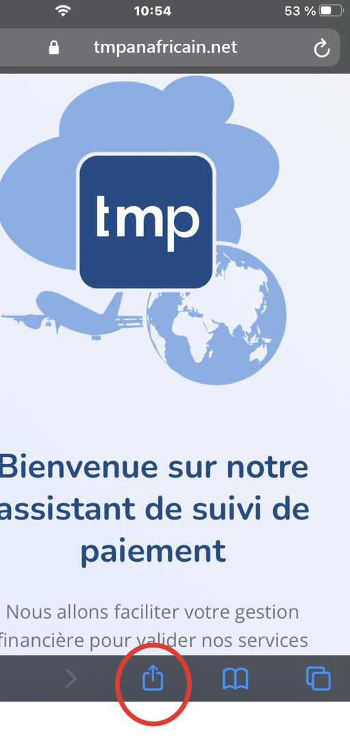 1. Pour commencer à installer l'application web sur votre ios suivez les étapes suivantes en images: