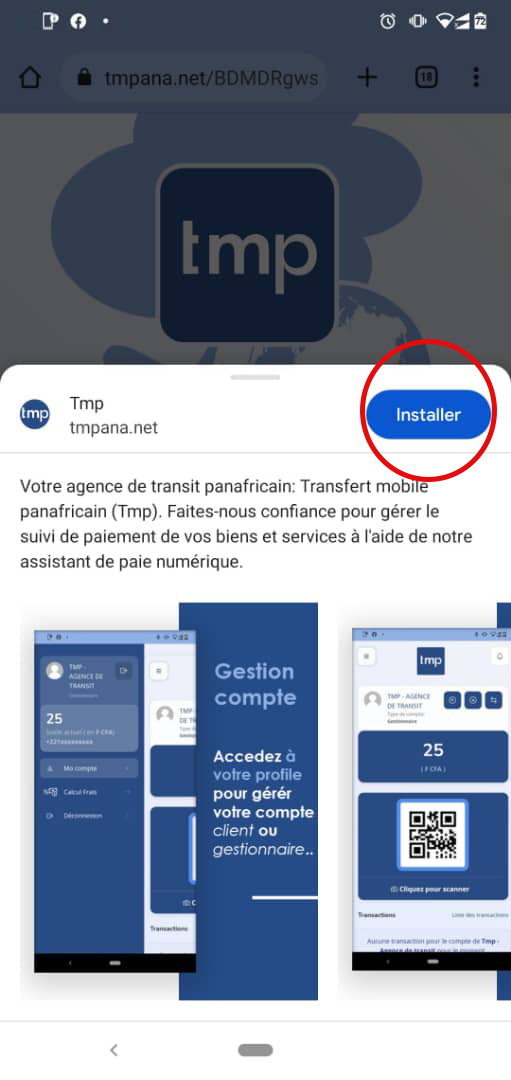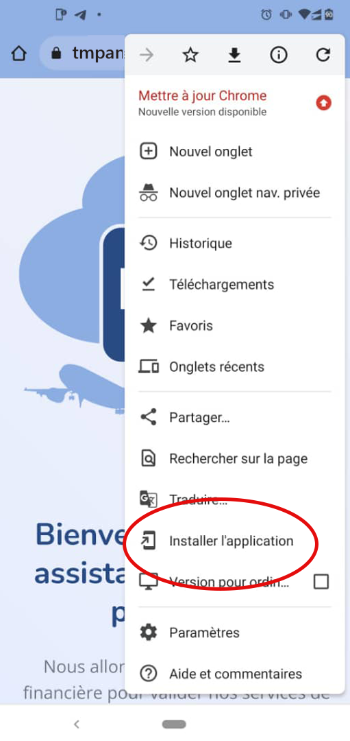 2. Pour commencer à installer l'application web sur android suivez la description suivante: